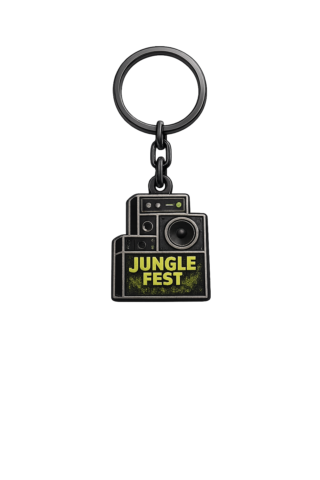 Porte-clés métal noir gravé Jungle Fest.Effet mat premium.Format compact.Idéal pour garder la jungle toujours sur soi.